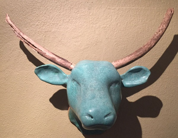 "Steer Clear" Ceramic with glaze and sticks Height: 12" Width:"16 Depth: 9 Private Collection