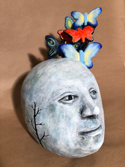 The Mind Can Be Opened Further Clay and acrylic paint. Height:10" Width:6 Depth:8 Private Collection