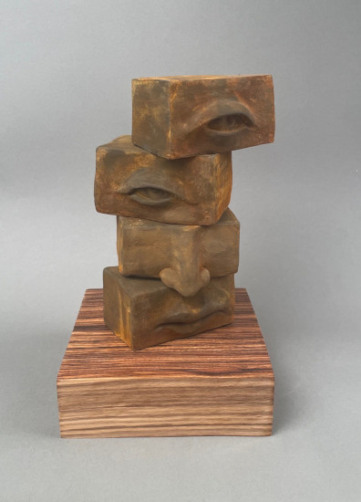 Fractured Clay, wood, and rust finish Height: 10 Width: 6 Depth: 6 This piece is currently available. Please contact the artist for more information.