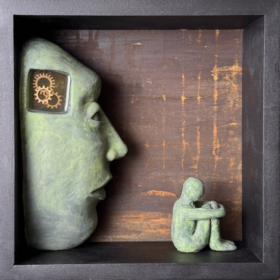 Cognition Clay and mixed media. Height: 12 Width: 12 Depth: 4.5 Private Collection.